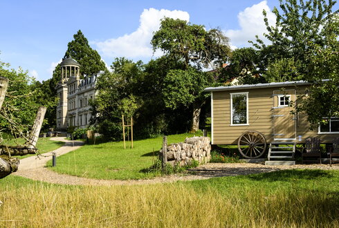 Ein wenig versteckt, nur ein paar Schritte vom Schloss entfernt, lockt unser gemütlicher Saunawagen alle Liebhaber wohlig-heißer Wonnemomente. Nach einem herrlichen Osterspaziergang genau das richtige.